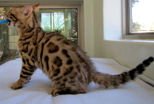 He has a wonderful tail and tail thickness...flash of camera has distorted his tail in pic below.